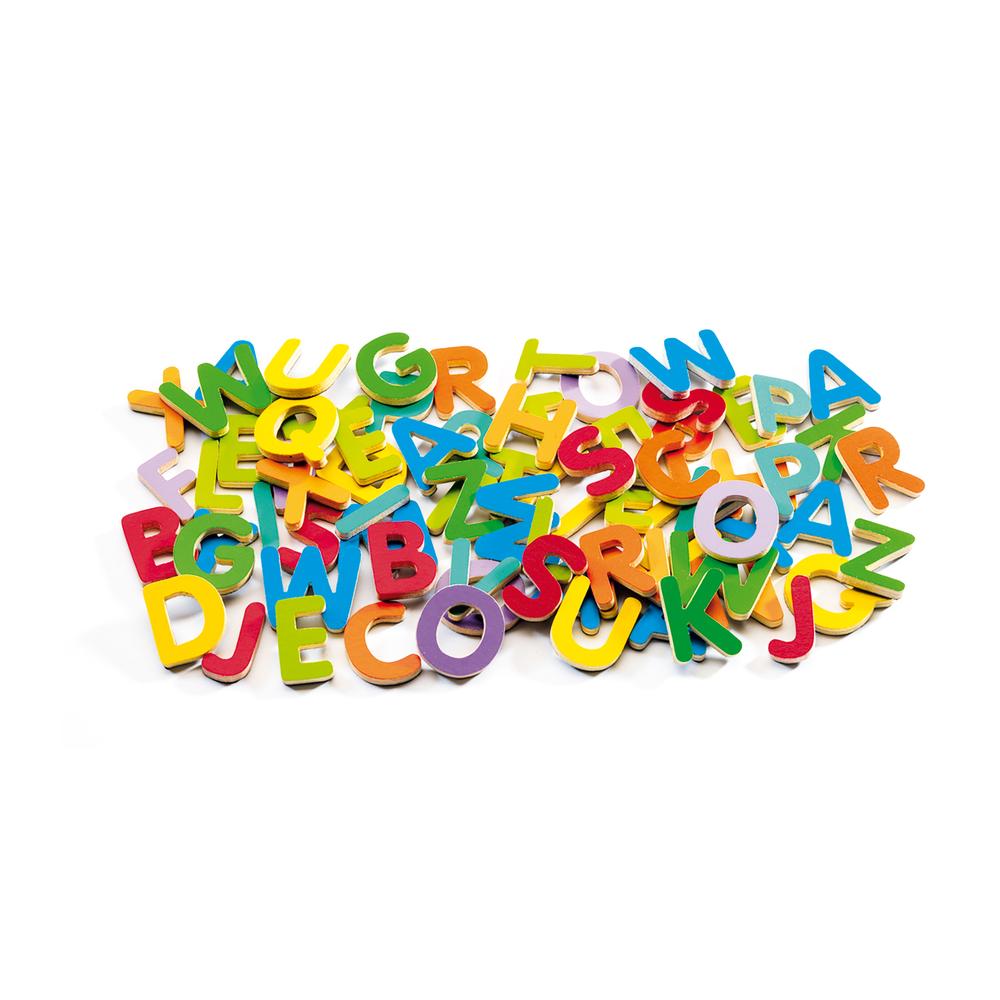- 83 letras magnéticas de madera formando el Abecedario, en letra mayúscula y muy coloridas.