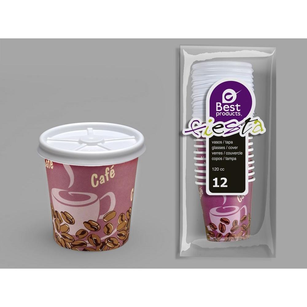 Bolsa 12 Vaso Cartón Decorado con Tapa 120 cc
