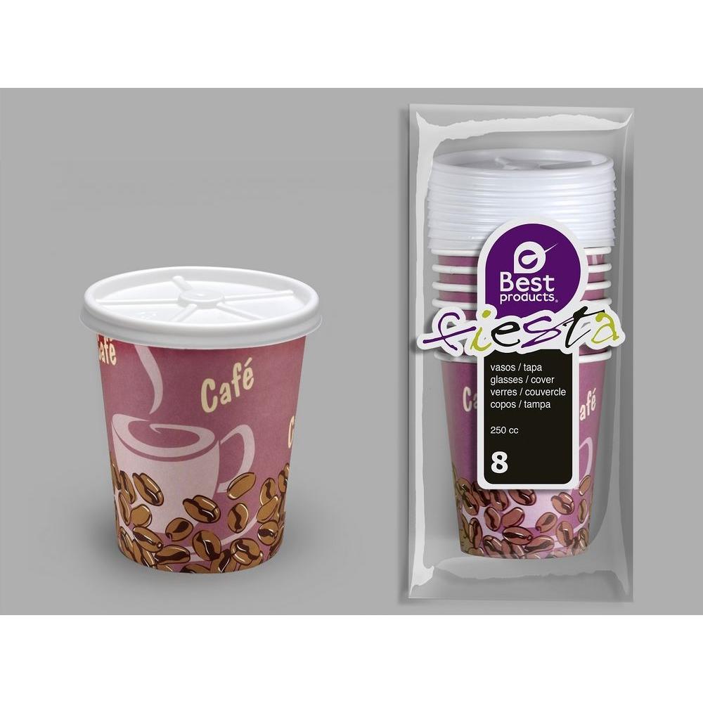 Bolsa 8 Vaso Cartón Decorado con Tapa 250 cc