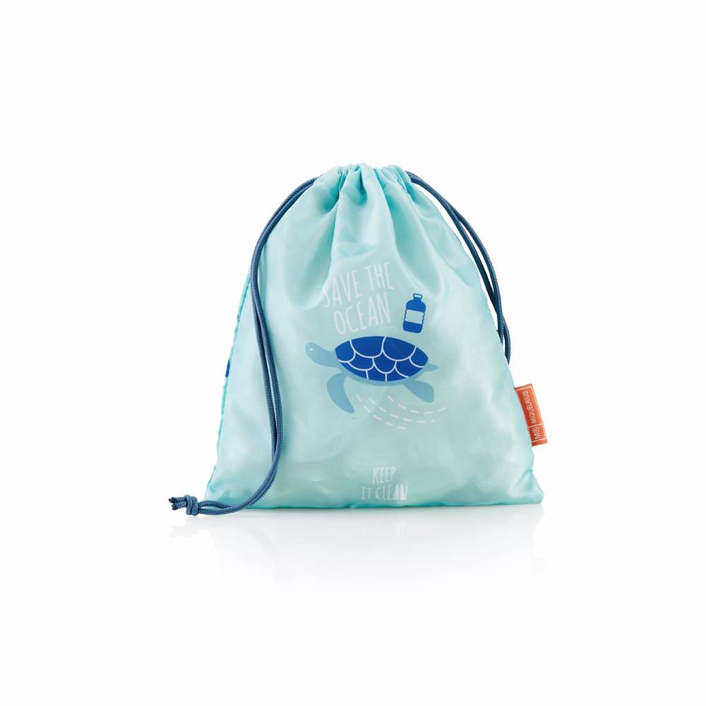 Bolsa Pequeña Reciclada con Cierre Cordon Save the Ocean Miquelrius Azul.
