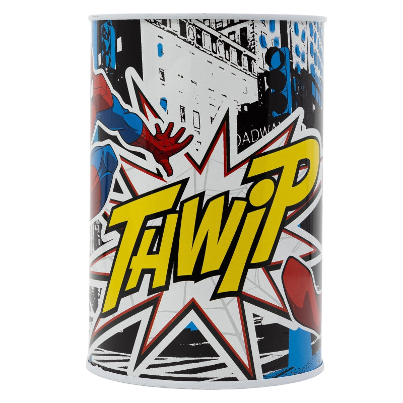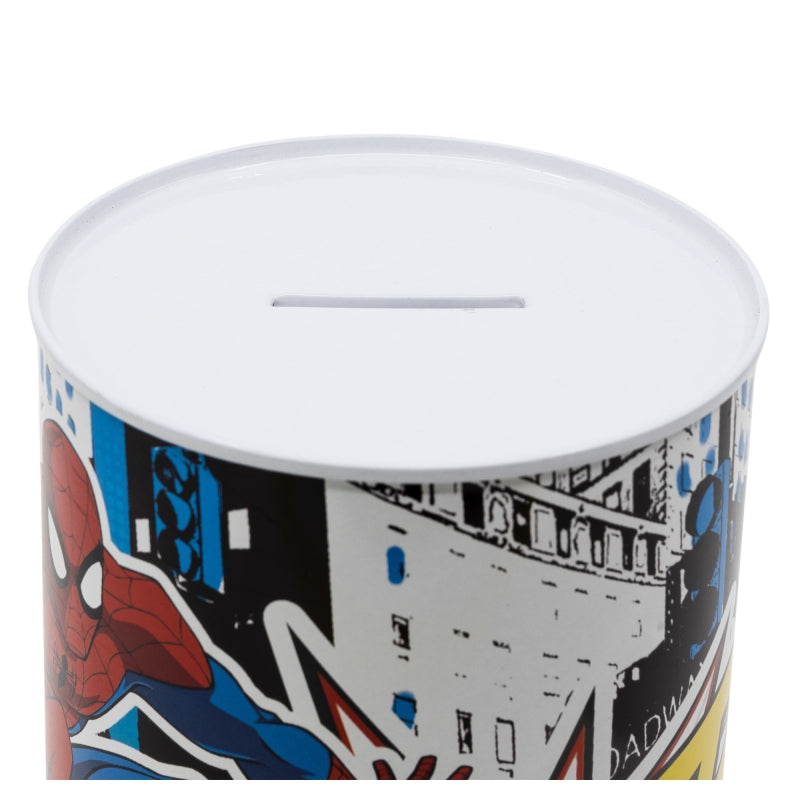 Práctica hucha infantil metálica para los ahorros de los más pequeños decorada con atractivos diseños basados en los personajes principales de sus series favoritas.