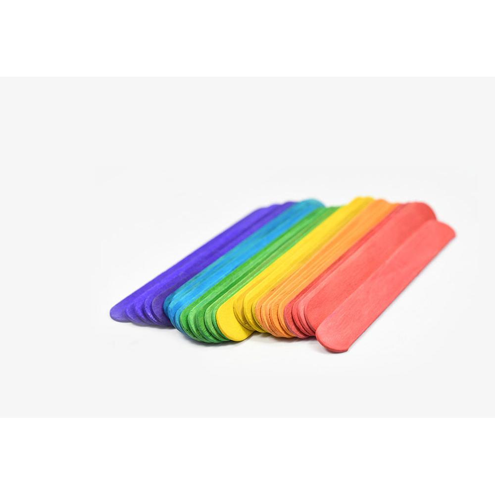 Pack de 50 palitos de madera planos, de 11 cm de largo. Colores surtidos. Ideal para trabajos de manualidades.