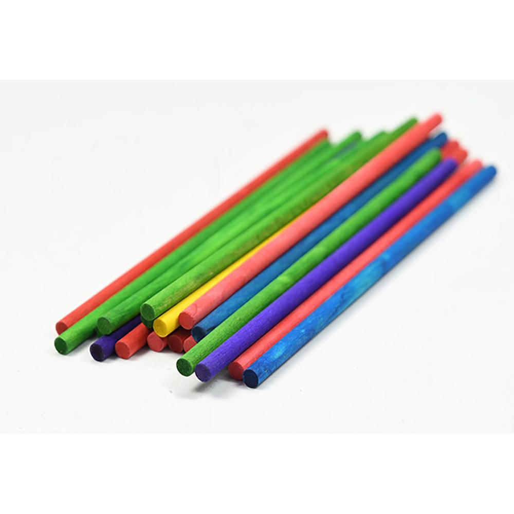 Pack de 20 palitos de madera de 5 mm de grosor y 15 cm de largo. Colores surtidos. Ideal para trabajos de manualidades.