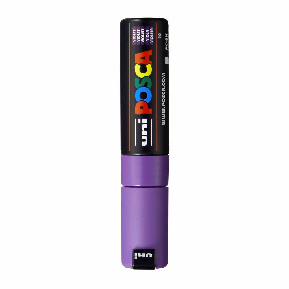 Uni Posca marcador de pintura base al agua 8,0 mm. Violeta.No Tóxico.Solo permanente en superficies porosas. Punta tipo biselada.